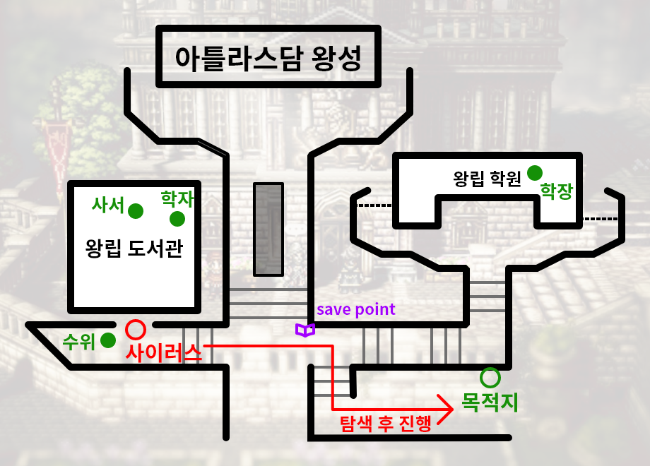 아틀라스담 왕성 앞 (왕립학원 → 왕립도서관)