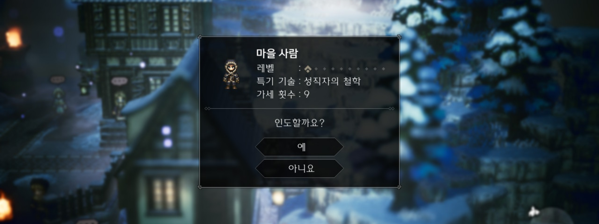 이전 글 참고 https://wkqtkdtlr.tistory.com/165 (오필리아 1장 2편) [OCTOPATH TRAVELER 1] 옥토패스 트래블러 1 - 오필리아 1장 2편이전 글 참고 https://wkqtkdtlr.tistory.com/163 (오필리아 1장 1편) [OCTOPATH TRAVELER 1]