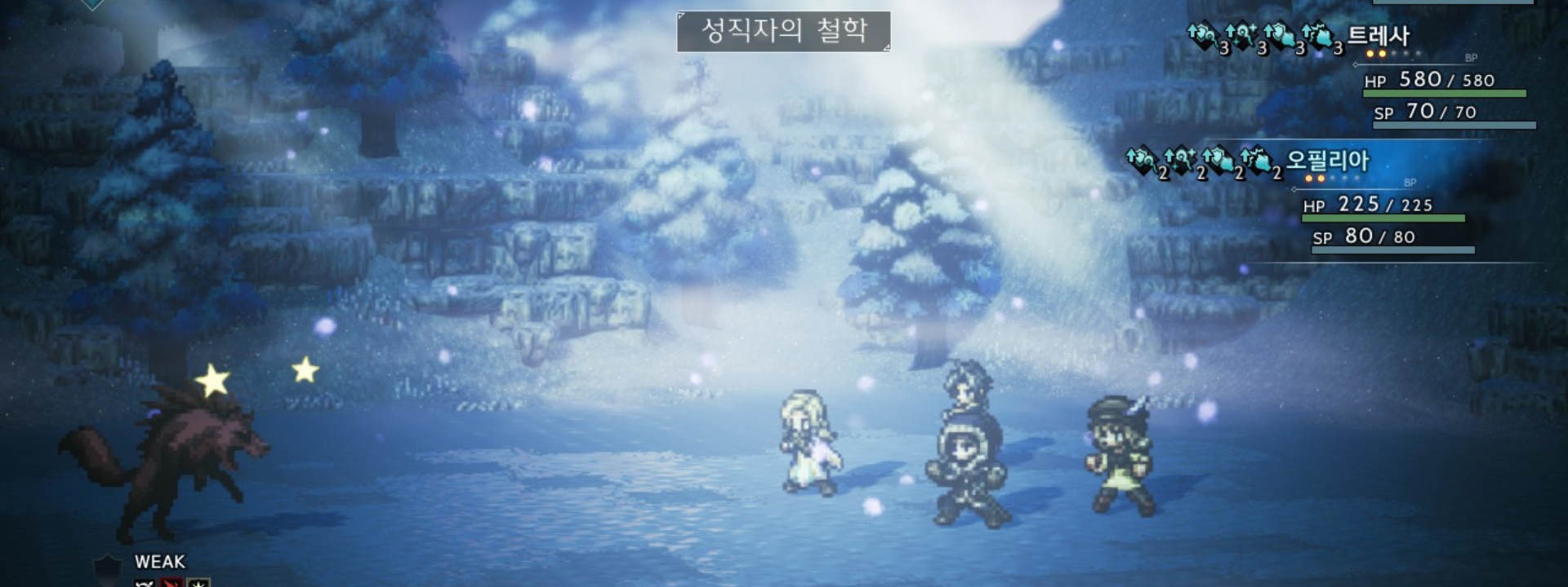 이전 글 참고 https://wkqtkdtlr.tistory.com/165 (오필리아 1장 2편) [OCTOPATH TRAVELER 1] 옥토패스 트래블러 1 - 오필리아 1장 2편이전 글 참고 https://wkqtkdtlr.tistory.com/163 (오필리아 1장 1편) [OCTOPATH TRAVELER 1]