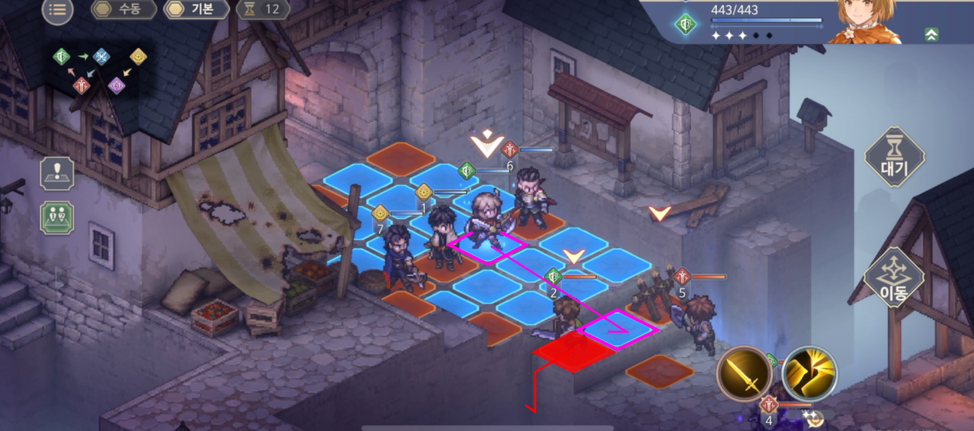 지형을 이용하라면서 이번에도 마이타의 넉백 스킬을 매턴 사용할 수 있게 해준다. 하지만, 위의 상황과 같은 첫번째 턴을 제외하고는 굳이 사용하는 게 더 비효율적인 경우가 많다. 애초에 마이타의 이동거리가 3밖에 되지 않아 적의 옆으로 돌아가기가 쉽지 않다. 그러니 그냥 소탕에 목적을 두고 때려잡도록 하자.