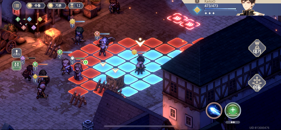 튜토리얼엔 없던 상황. 뒤에 있는 적이 있음을 알려준다. 그리고는 튜토리얼과 똑같은 전투 시작. 적을 처치하자.