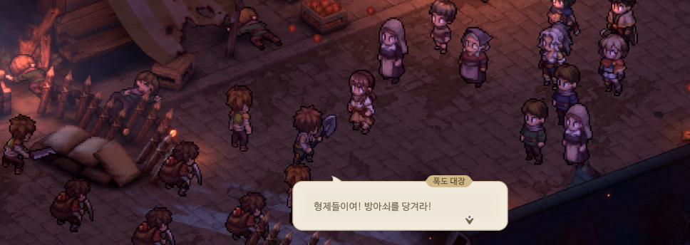 따라가 도착한 곳에는 폭도와 리더로 보이는 한 아가씨가 말싸움을 하고 있다.