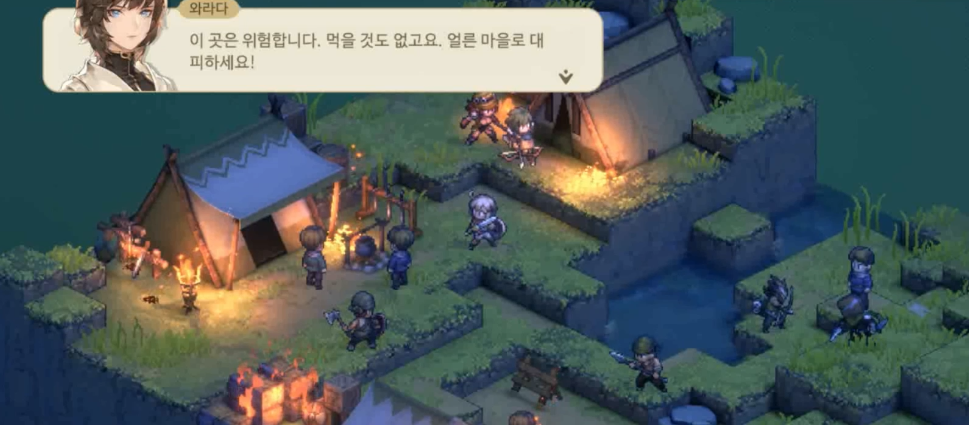 이렇게 아군이 가까이 가면 주인공이 대피하라고 하면서 평민들을 대피시킨다.