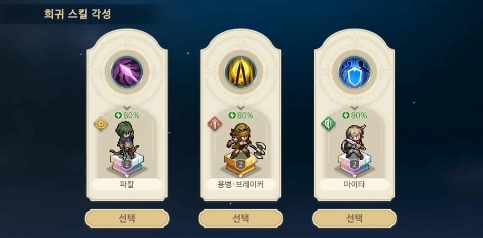 희귀 스킬을 3개 받는데 그 중 하나를 선택할 수 있다.