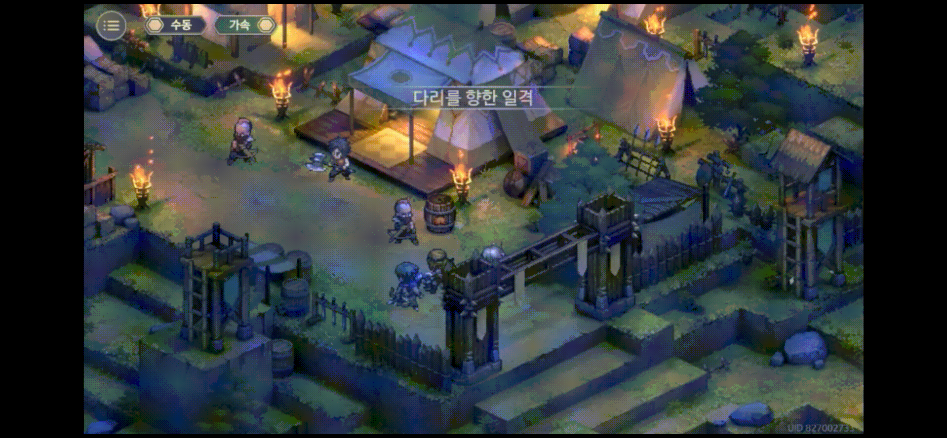 이에 전술을 선택하라고 하는데, 보초병 급습으로 진행해보자. 보초병은 문 앞에 있던 3명을 의미한다. 3명의 적만 2턴 안에 전멸시키면 되므로, 어려운 미션은 아니다