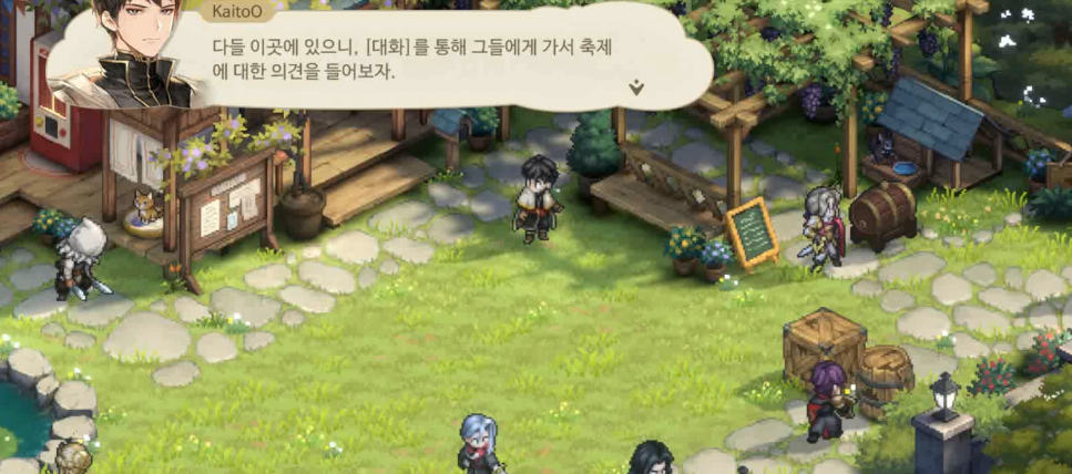 축제를 열고자 하는데 다른 사람들의 의견은 어떤지 물어보고자 주인공이 움직인다
