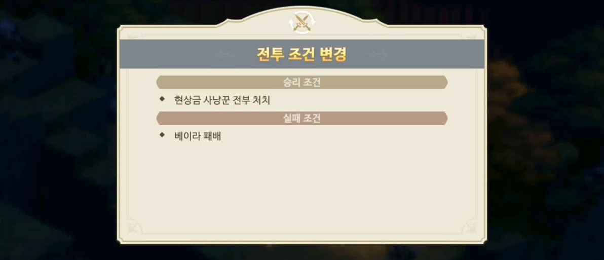 제안을 거절하는 단장, 그러자 이젠 승리 조건이 변경된다. 반대로 베이라를 지켜야 한다