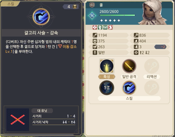 모모의 기본 이동력은 3인데 시작부터 1칸만 전진이 가능... 베이라의 스킬을 살펴보니