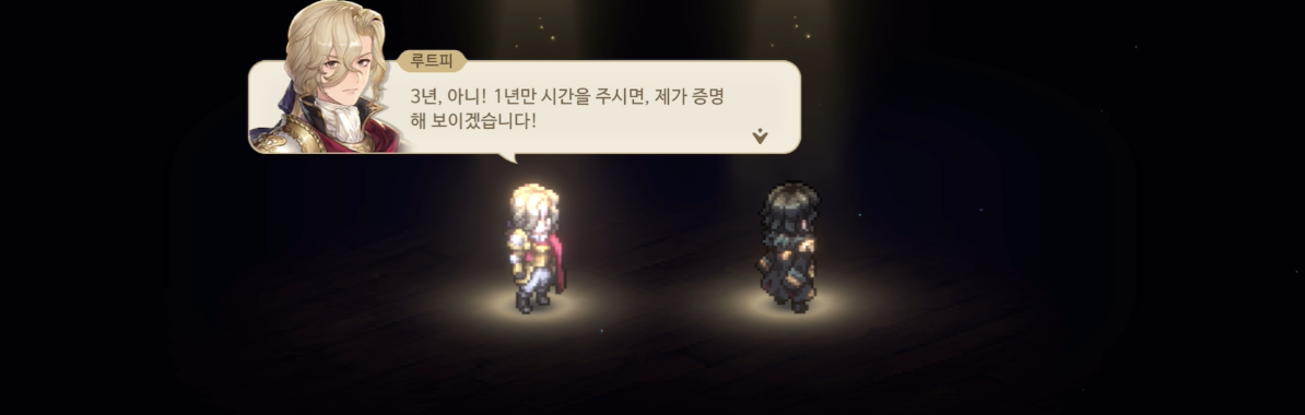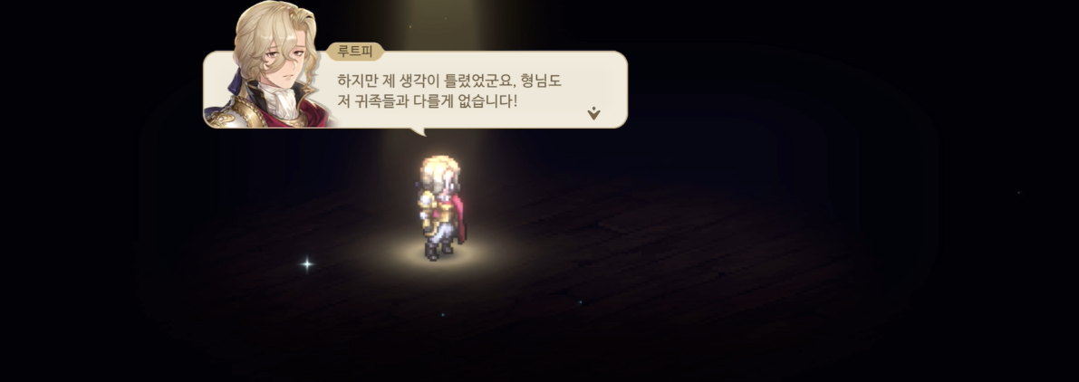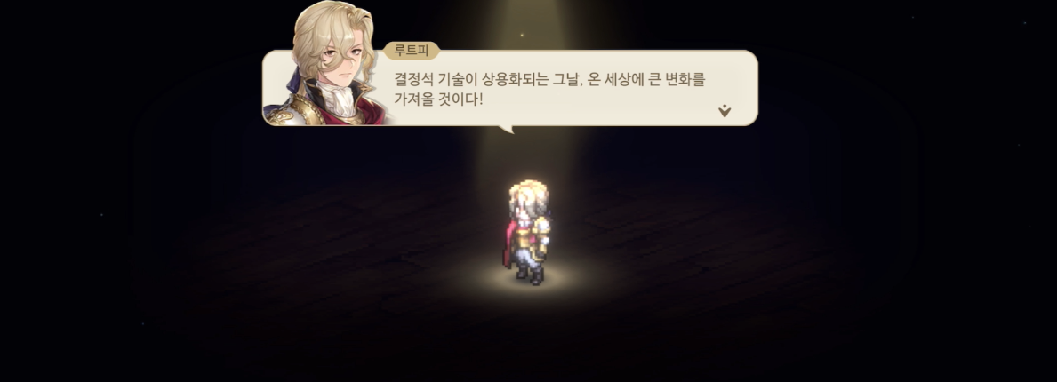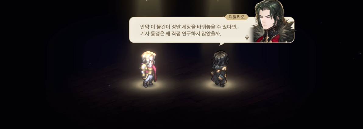 이에 선물을 준비했다며 결정석 권총을 보여주는 기사 동맹. 진보한 무기를 보며 루트피는 꽤나 많은 생각이 드는 듯하다
