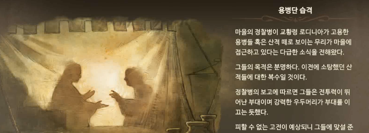 두번째 소식, 지난 산적 소탕에 대한 복수로 교황령이 고용한 용병들이 마을에 접근하고 있다고 한다
