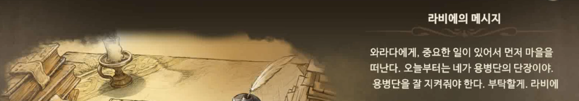 주인공에게 단장직을 맡기고 자신은 일이 있어서 마을을 떠난다는 라비에