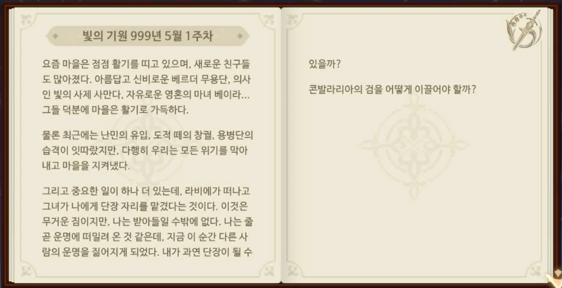 이전 글https://wkqtkdtlr.tistory.com/265 [소드 오브 콘발라리아] 운명의 소용돌이 9주차 - 용병단 습격 (긴급 에피소드)이전 글https://wkqtkdtlr.tistory.com/264 [소드 오브 콘발라리아] 운명의 소용돌이 8주차