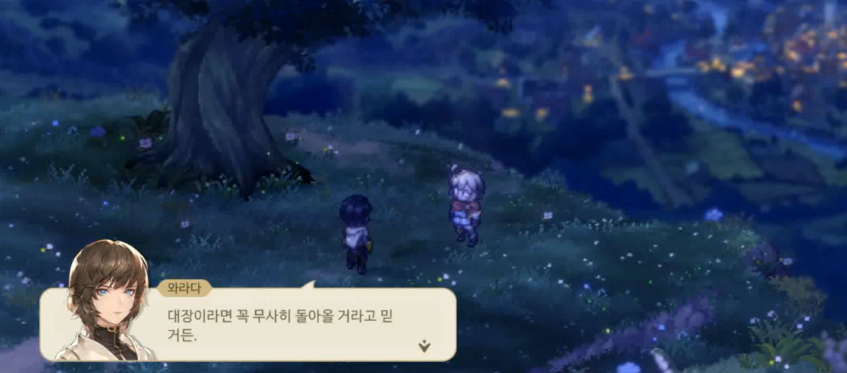 그러므로 라비에가 돌아올 때까지 스즈란 마을, 용병단을 잘 지켜내자. "요로시쿠 오네가이시마스 단쵸-"