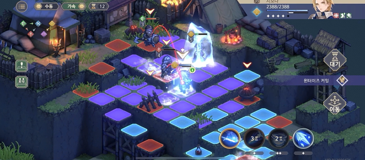 이 "한기" 는 스택이 쌓이면 추가로 해당 캐릭터를 괴롭히는데, 3스택에는 공/방 10% 감소, 6스택에는 동상, 9스택에는 동결이 발동하면서 동상효과가 2배가 된다. 위에서 이야기 했듯이 이번 추가 목표는 시모나의 "한기" 스택이 4스택이상이 되지 않는 것. 그럼 결론적으로 4턴이 종료되기 전까지 이 전투를 끝내야 할까?