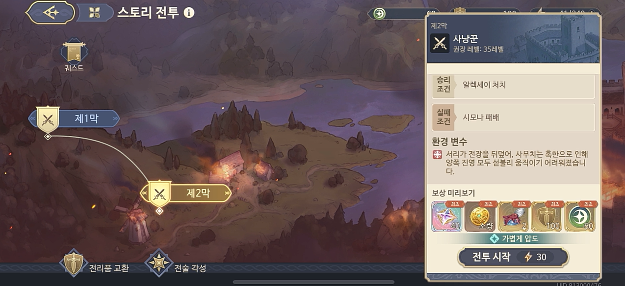 2막을 시작하려고 누르는 순간 역겨운 기사장 토레스의 자기자랑으로 시작한다