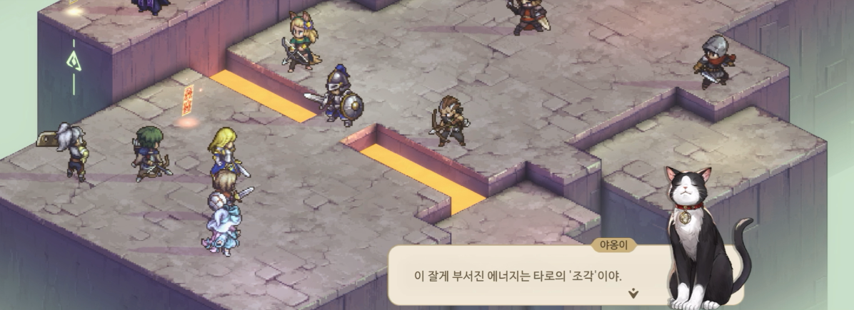 밟아보면 알 것이라는 야옹이. 이번 스테이지에서는 해당 타로조각 위로 캐릭터를 움직여보자