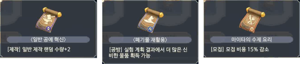 필자는 <폐기물 재활용> 선택. 공방 실험 계획 결과에서 베이라가 만든 기괴한 물건들이 가끔 나온다...