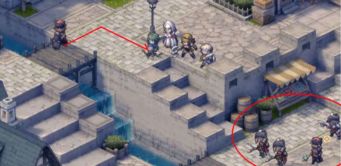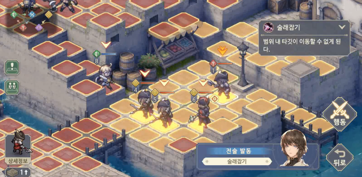 왼쪽에는 1명의 적만, 오른쪽 아래에는 4명의 적이 있다