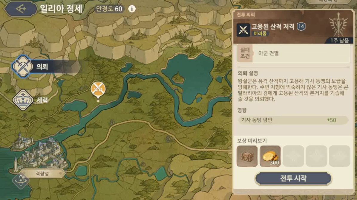 왕실군이 고용한 산적을 상대하는 임무이다