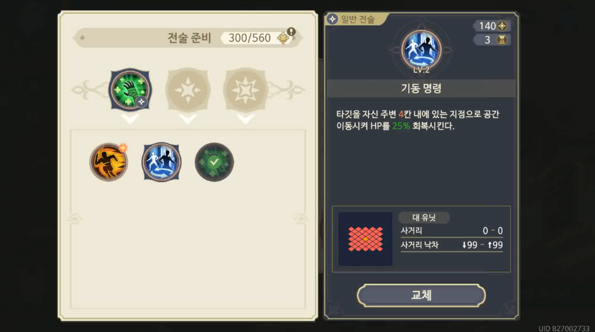전술 역시 랜덤으로 부여되기 때문에, 사람마다 모두 다를 것이다. 그렇다보니, 오히려 전술 쪽에서 무슨 전략을 짜거나 공략을 하기가 굉장히 까다롭다. 결국 전술 스킬이 나오는 것이 랜덤이기 때문에...