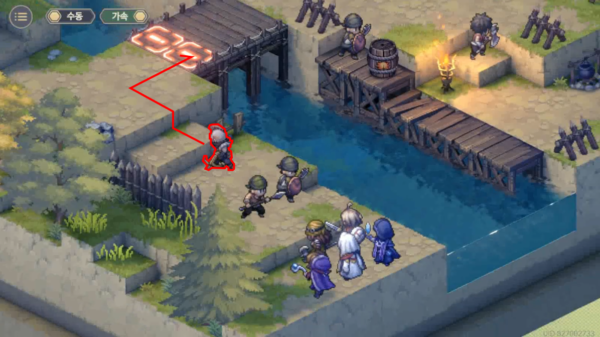 전방 부대 중 한 명이 스즈란 용병이 왔다는 정보를 알리려 뒤로 돌아간다