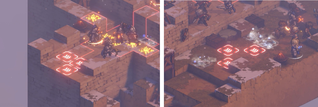 측면도 마찬가지... 한기를 다스릴 수 있는 것은 "용병 화염 주술사" 한 명 뿐이다. 측면 쪽 횃불은 첫 턴 시작과 동시에 날아가기 때문에 의미가 없다.