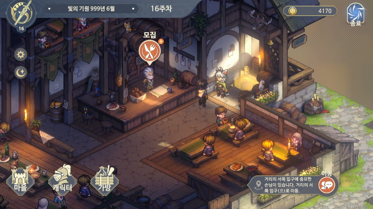 16주차 시작. 무기 제작도 완료되었고, 이번 주에는 여관에 새로운 용병이 등장한다.