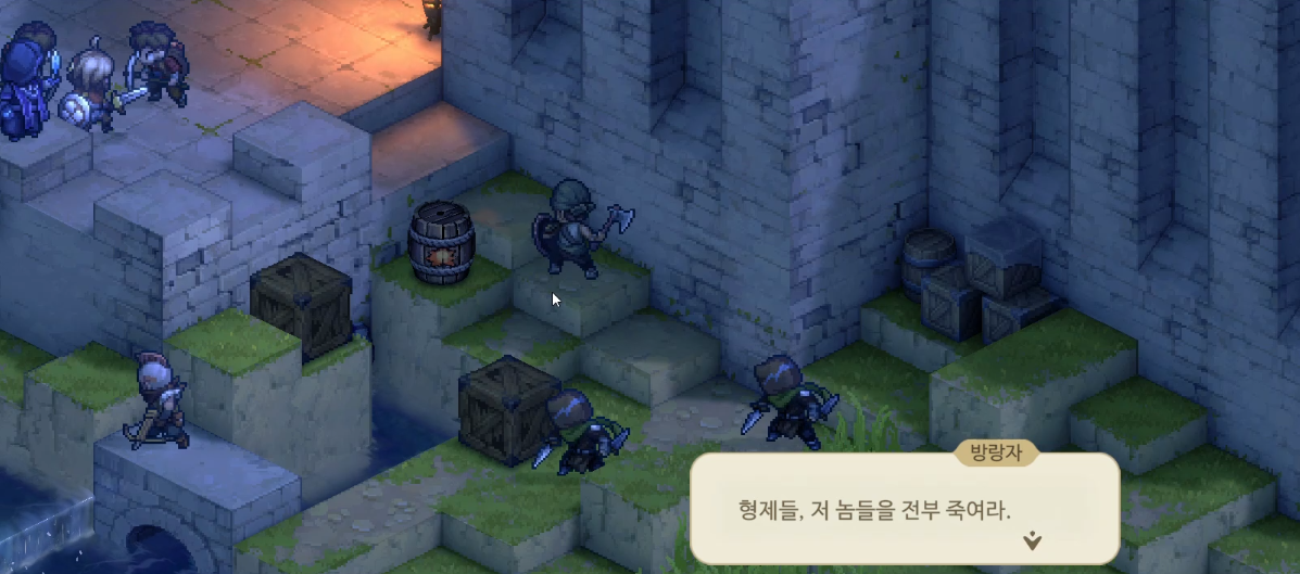 매복이 아니라 앞에 싸우던 병사들이 기사 동맹이 고용한 군대... 즉, 우리 둘은 같은 편이었다. 같은 편끼리 싸우고 있었던 것. 그래서 이번 의뢰의 제목 "오해로 인한 싸움" 이다.