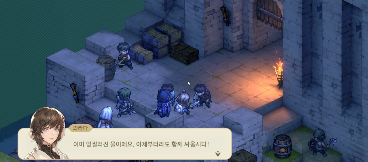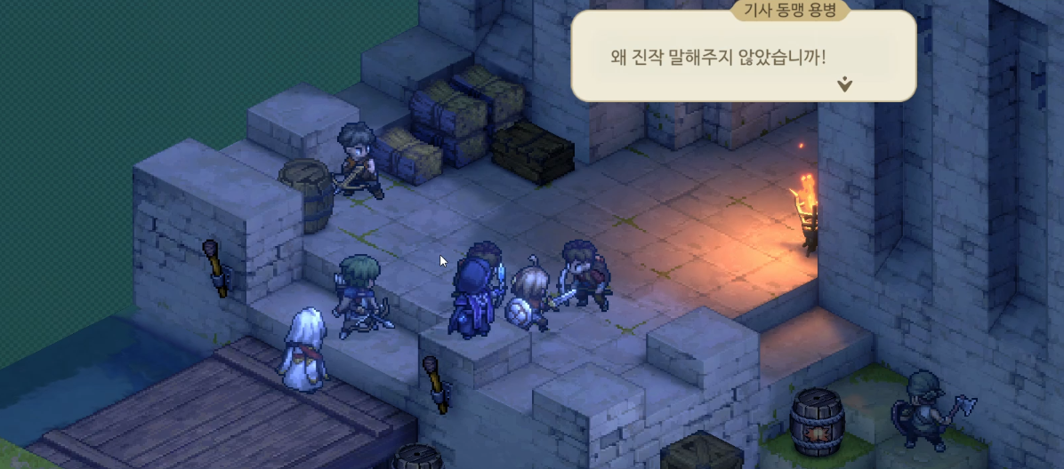 매복이 아니라 앞에 싸우던 병사들이 기사 동맹이 고용한 군대... 즉, 우리 둘은 같은 편이었다. 같은 편끼리 싸우고 있었던 것. 그래서 이번 의뢰의 제목 "오해로 인한 싸움" 이다.