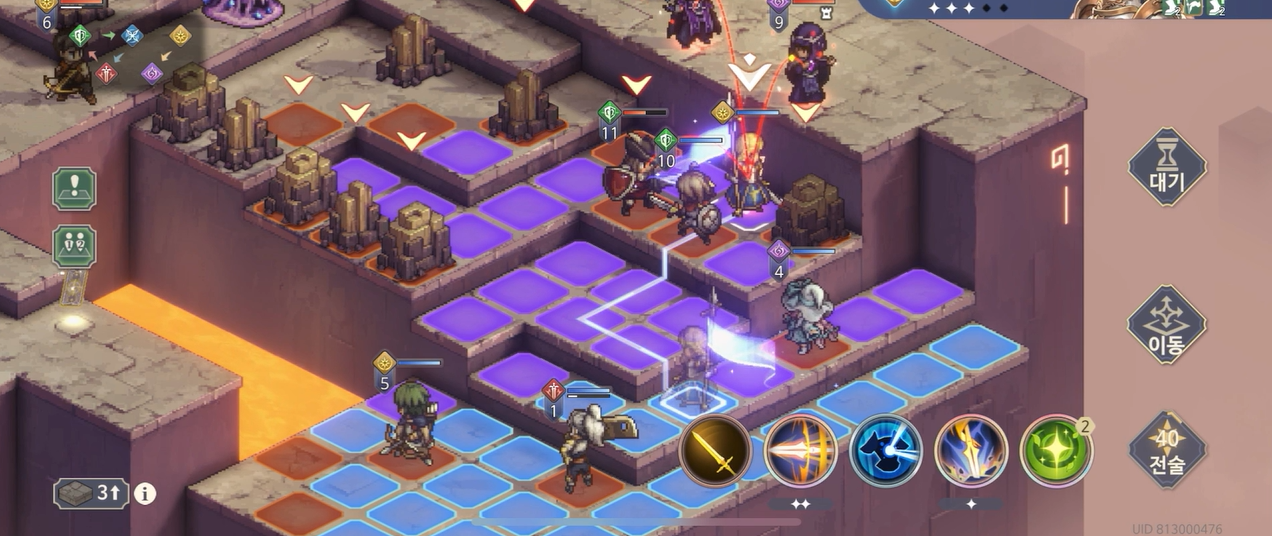 점프 없이 위 지형으로 가려면 이와 같이 돌아가는 수밖에 없다. 기본적으로 캐릭터들이 이동력을 소모하면서 오를 수 있는 높이는 최대 2층이다.