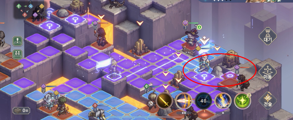 정답을 맞히니 암살자 3명이 아군으로 나타나고, 뒤의 방패검병은 사라진다. 다시 전투를 이어가도록 하자