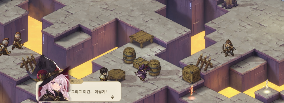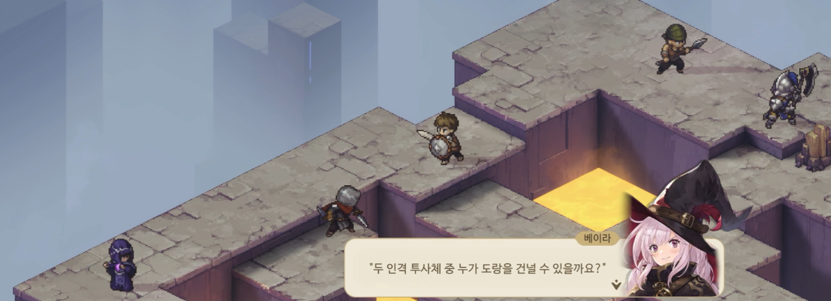 생각보다 심오한 질문이다. 궁수니까 누구든 나무상자를 맞출 수 있을 것 같지만 그렇지 않다. 석궁병의 경우 일반공격도 "직선 사격"으로 이루어져 있기 때문에, 앞에 장애물이 있으면 그 뒤에 있는 표적을 맞출 수 없다. 답은 "왼쪽의 석궁병 두 명은 상자를 맞추지 못한다." 이다.