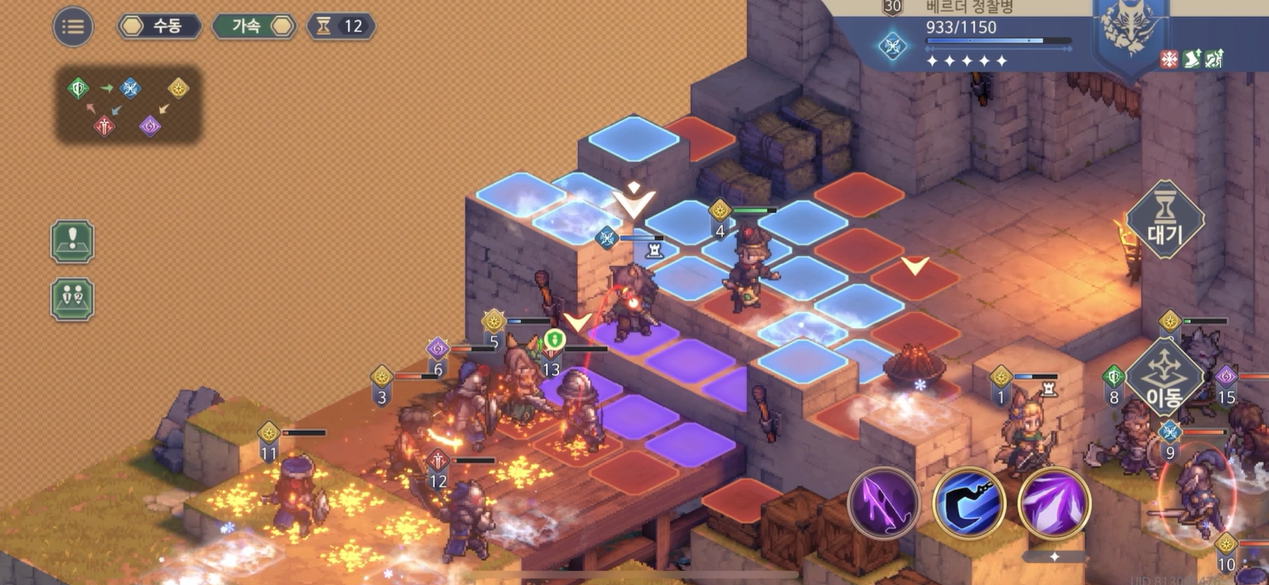 전방쪽 적들의 HP를 살펴보면 4턴임에도 대부분 빈사상태임을 알 수 있다
