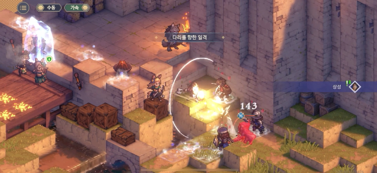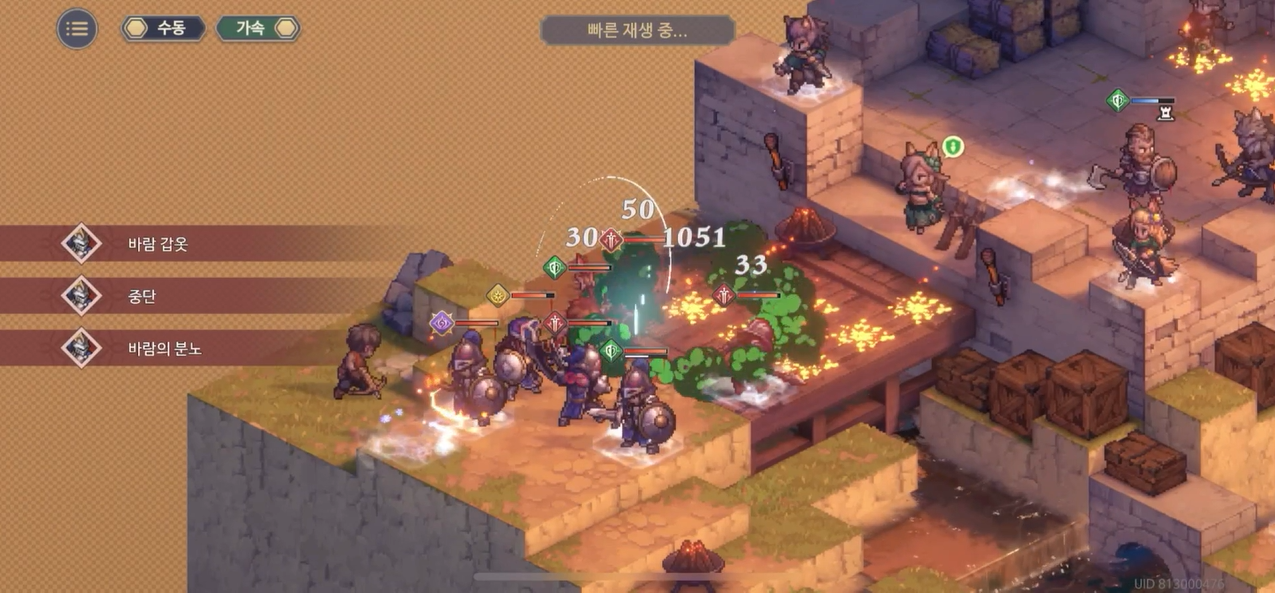 방패병은 꾸준히 오른쪽으로 달려준다. 기사단 장창병의 대미지를 대신 받아줘야 하기 때문이다.