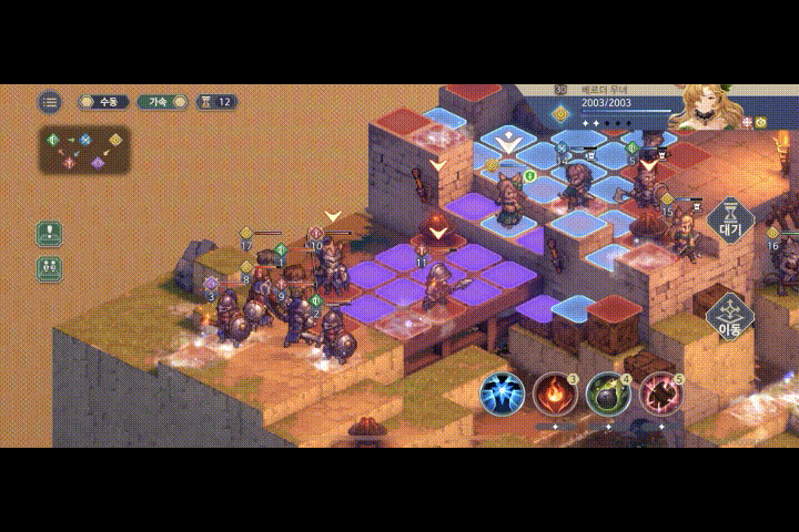 3턴이 시작되면, 무녀에게는 한번도 쉬지 않고 스킬을 사용한다는 가정하에, 7턴 동안 딱 한 번 설치물을 두 번 설치할 수 있는 기회가 있는데, 이를 지금 활용하기로 한다.