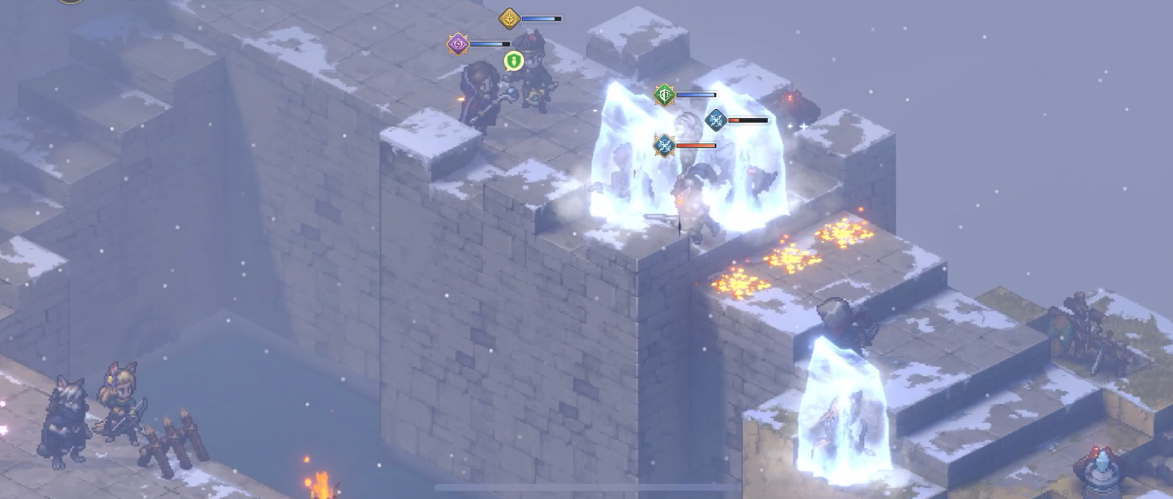 세 명의 아군이 빙결 상태로 포로로 잡혀있다. 이들을 구출하는 것이 1목표인 스테이지