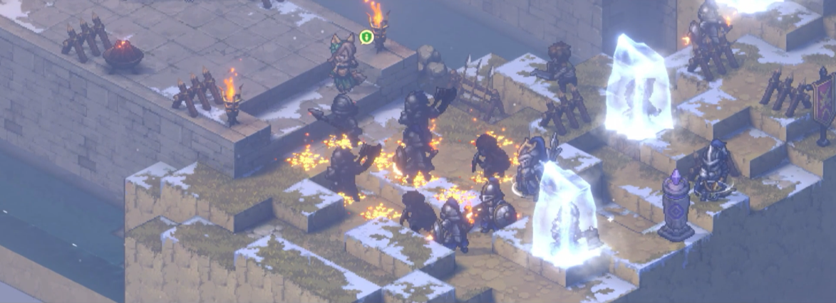 이번 스테이지에서 라탄공을 사용하지 않는 이유이다. 적들이 계속 끊임없이 나오는데 라탄공을 이용한 설치 트랩보다 연소지형을 만드는 것이 범위 대미지를 주기에는 더 좋기 때문이다. 특히 위와 같이 설계하여 터뜨리면 이번에 나오는 모든 적들에게 연소 효과를 부여할 수 있다.