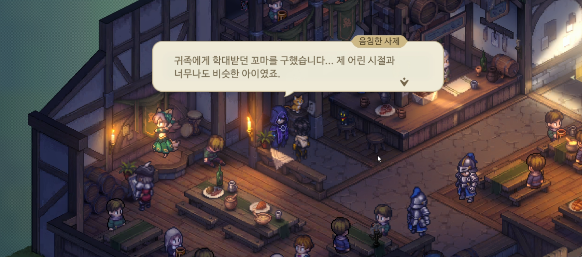 여관으로 가면 암흑의 빛을 떠나 스즈란 용병단으로 입단한 암흑 사제가 말을 걸어온다