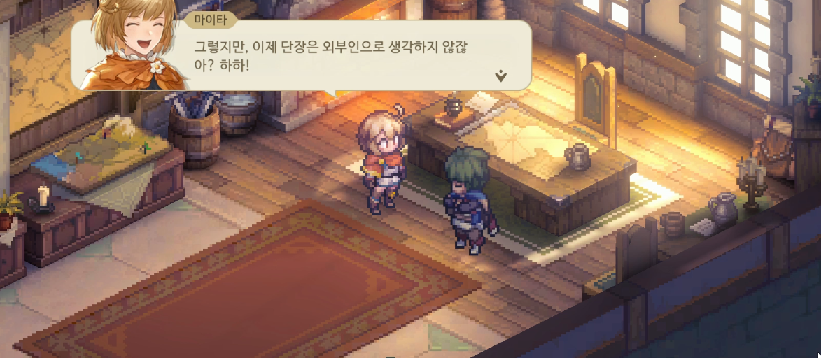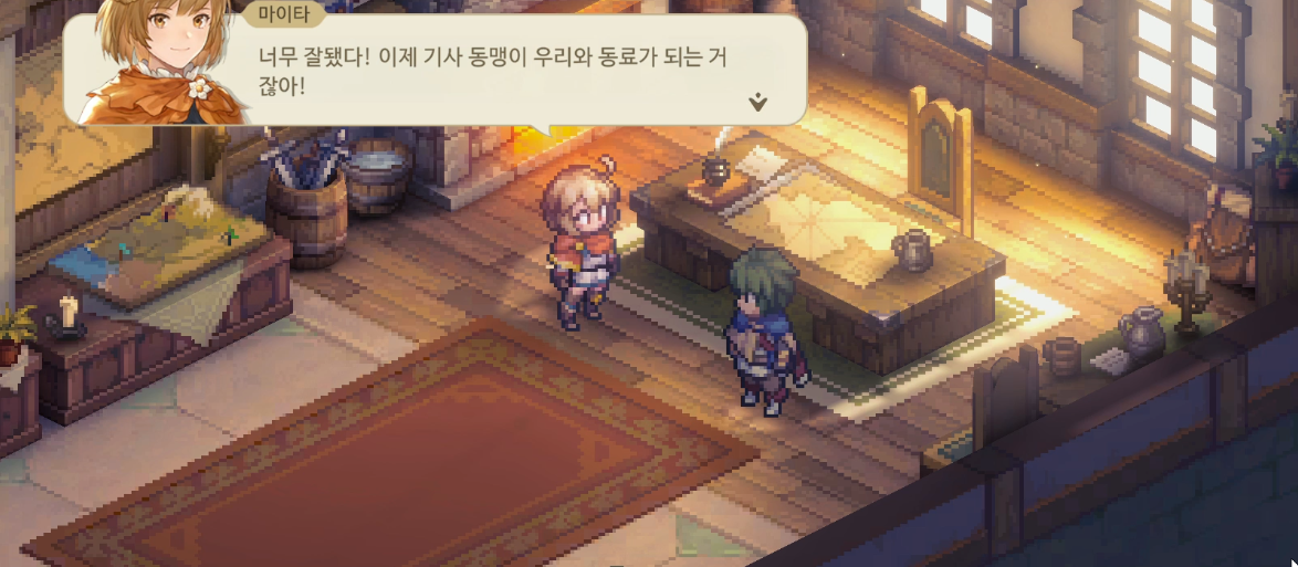 기사단과의 동맹을 기뻐하는 마이타, 이제는 안전하다는 느낌이 드는 것일까