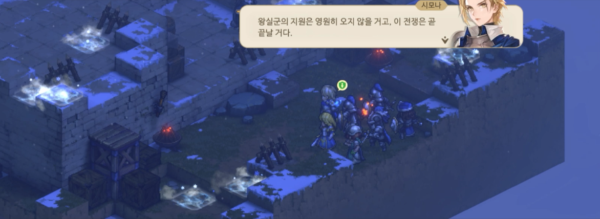 게임의 컨셉은 일리아 다리 수호전. 불타버린 대지위에 11막에서는 실버울프 용병단 입장에서 시모나를 막은 것이라면, 이번 막간8은 시모나의 입장에서 이들을 뚫어내는 것이다