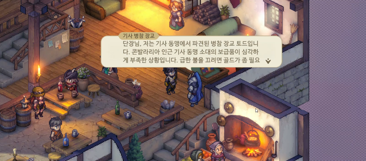 우선 우리가 기사동맹을 선택함으로 인해 그 나머지 세력과의 평판이 30씩 낮아지게 된다. 왕실군 입장에서야 이제는 완전히 적이 되어버린 셈이고, 교황령 역시 특별히 언급하지는 않더라도 결정석 제련 능력을 가진 자들이 결정석 광맥까지 손에 넣는다면, 기존의 결정석 수급을 독점해오던 교황령 입장에서는 좋은 소식일리가 없다.