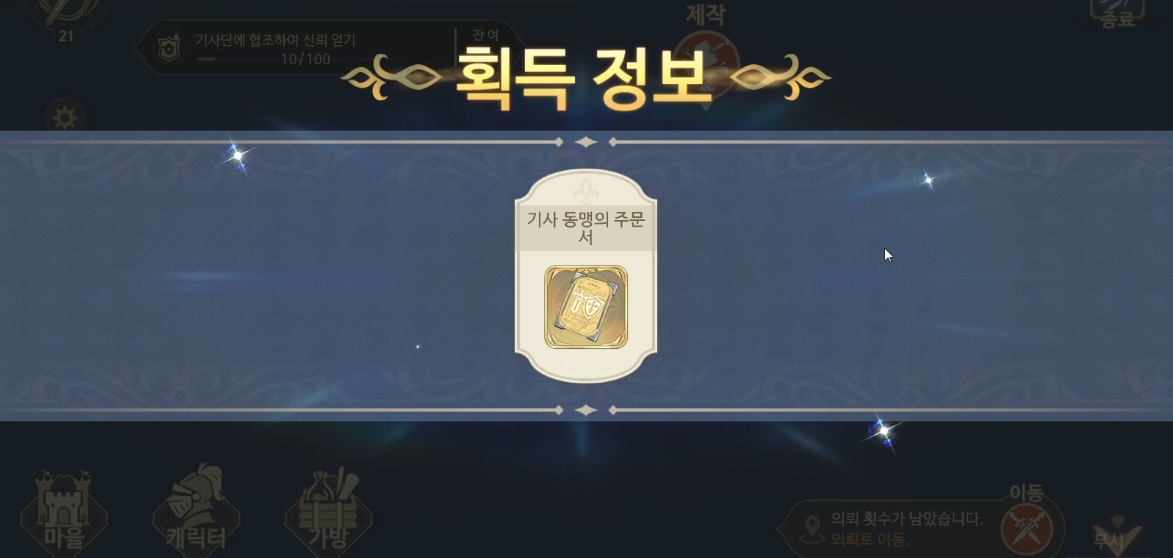 보상으로는 기사 동맹 세력 평판 +100...