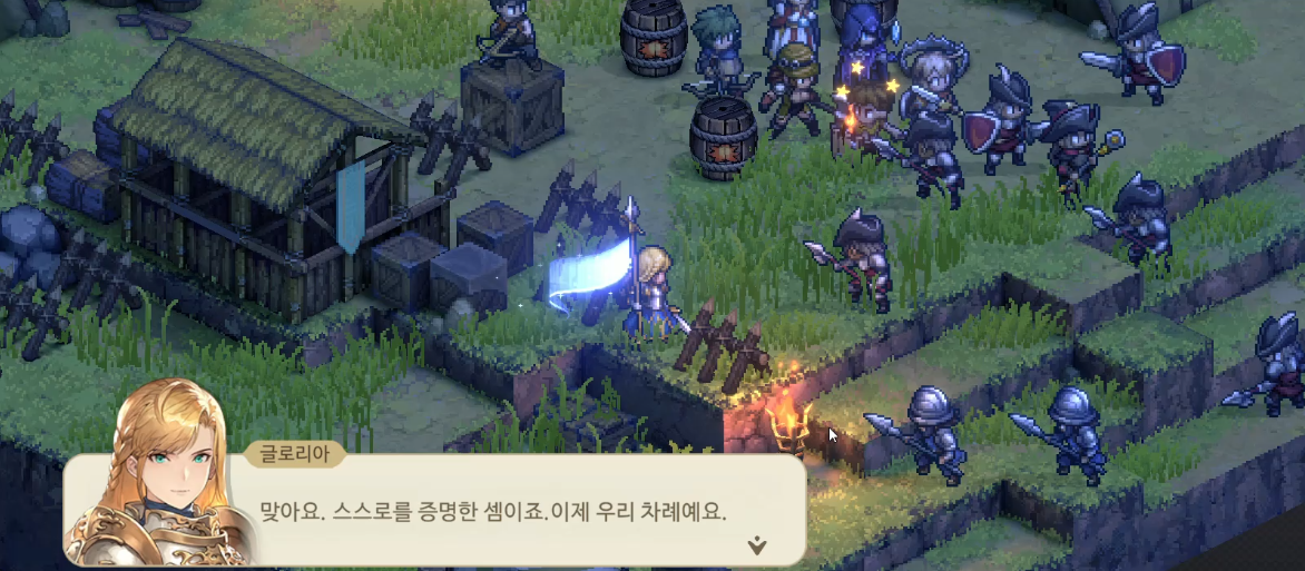 우호관계가 되면 이제부터는 여관에서 기사 동맹 병사들이 출현하게 된다. 만약 초기 멤버로 글로리아를 데리고 왔다면, 지금부터는 글로리아 스킬 중 하나로 기사 동맹군 오라스킬을 하나 뽑아주면 도움이 많이 된다.