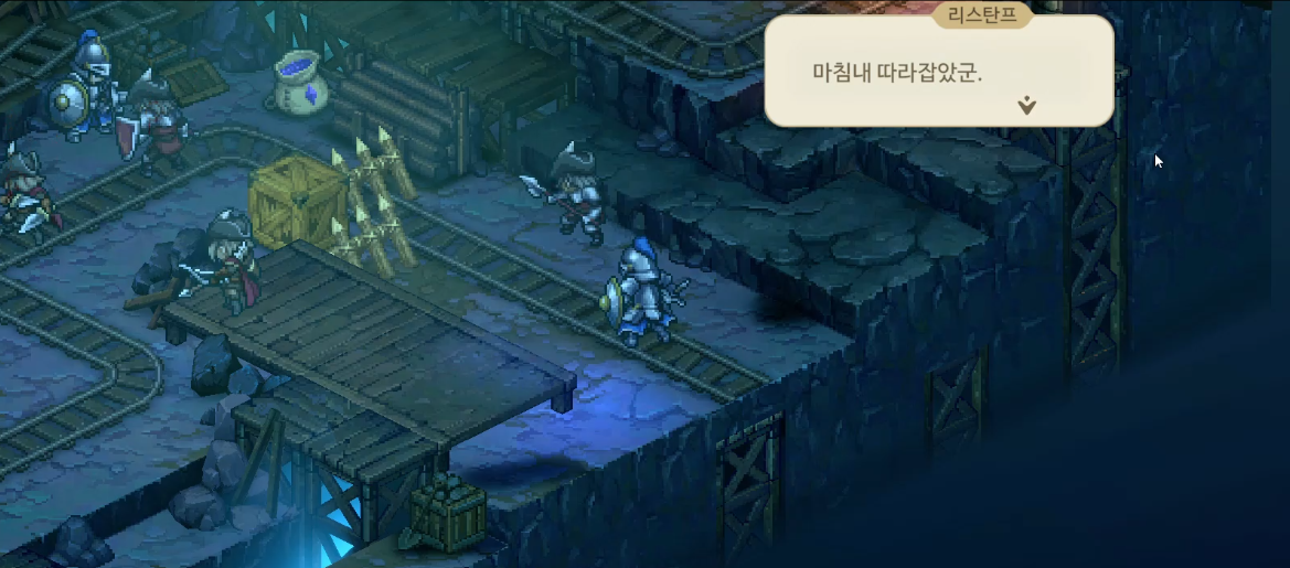 위의 감시자 속성의 병사를 따라갈 것인가, 아래 방패병, 장창병과 콤비를 이룰 것인가는 본인의 선택이다. 빛의 기사는 성직자와 같은 부류라 공격을 하면서 주변에 힐을 주기 때문에 내가 관리할 필요가 줄어들지만, 밑의 병사들은 우리 캐릭터들 + 기사동맹군에게 힐을 주면서 공략을 해야한다. 아래쪽이 메인 부대라 적들이 많이 포진되어 있어 배치에도 신경을 많이 써야 하니, 빛의 기사 한명이라도 건져가기로 결정한다