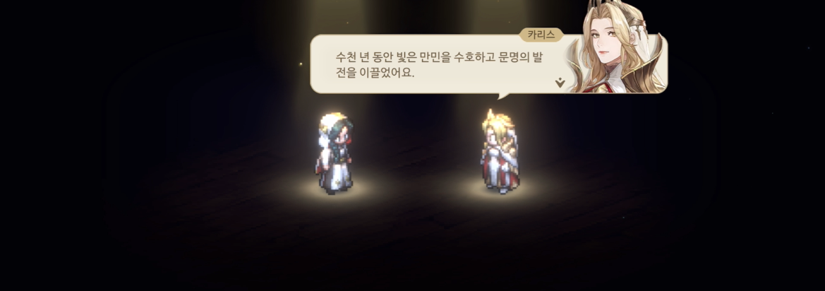 지속적으로 "빛"이라는 것을 인격화하는 듯한 모습이 보인다. "수호의 빛"이라는 종교 자체를 뜻하는 것인지, 아님 우리가 일반적으로 숭배하는 "신"을 "빛"으로 형상화한 것인지는 알 수 없지만, 어찌됐든 절대자적 위치에 있는 것을 뜻하는 것으로 보인다