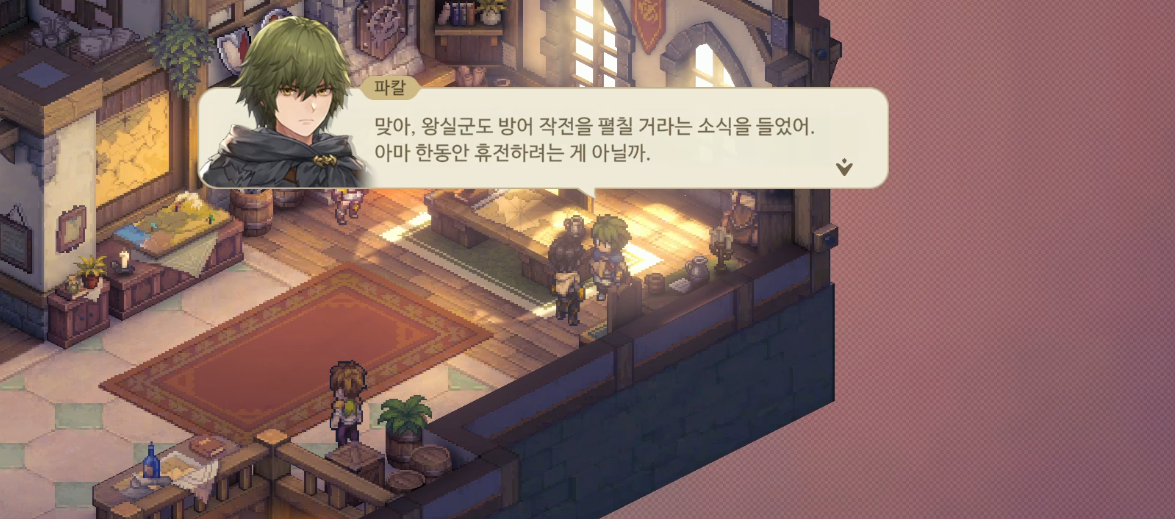 다시 단장실에 가보면, 파칼이 대화를 요청하고 있다
