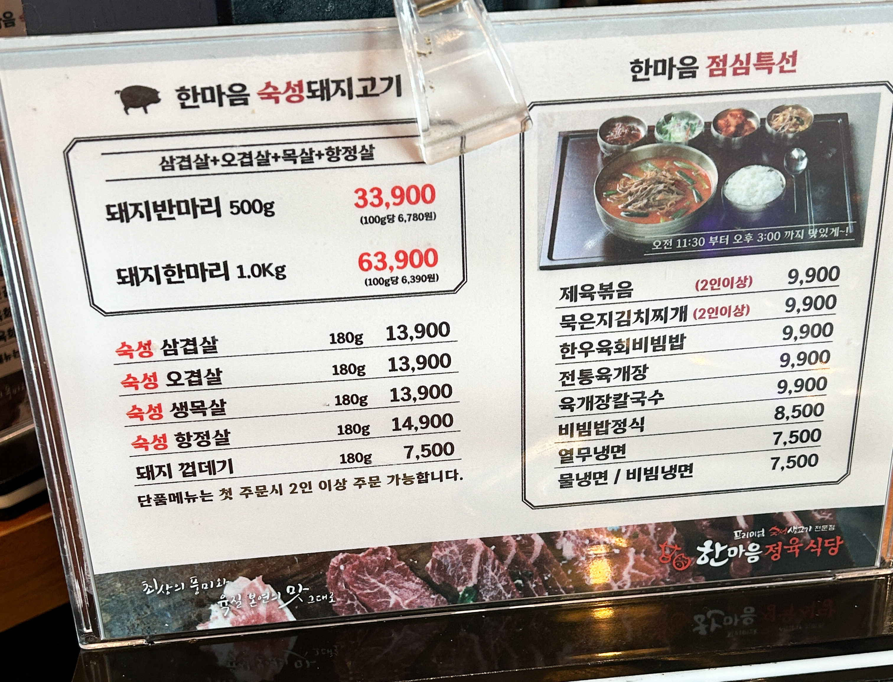 이런 친절을 받고 왔는데 다시 안 갈 이유가 없다. 점장님이 계시는 한 무조건 저녁식사를 하러 다시 한번 방문할 예정이다. 그리고 고기의 질과 가격은 나쁘지 않다는 것을 광주하남점을 가 보았기에 알고 있다. 오늘은 점심메뉴와 관련된 포스팅이라 말을 아낀 것일 뿐 고기를 먹기에도 괜찮은 체인점이다. 한마음정육식당을 운영하는 (주)GPFC 우광식 대표의 인터뷰에는 항상 "맛있는 것은 무조건 싸야한다!"는 글귀가 있듯이, 고기 가격도 경쟁력이 있는 편이다. 180g 14,000원은 생각보다 주변에서 쉽게 찾아보기 어려운 가격이다. 무엇보다 키즈존이 아주 크게 있어 아이를 데리고 오기에도 편하고 뒷편에 주차장도 넓게 있어 접근성은 매우 좋다.