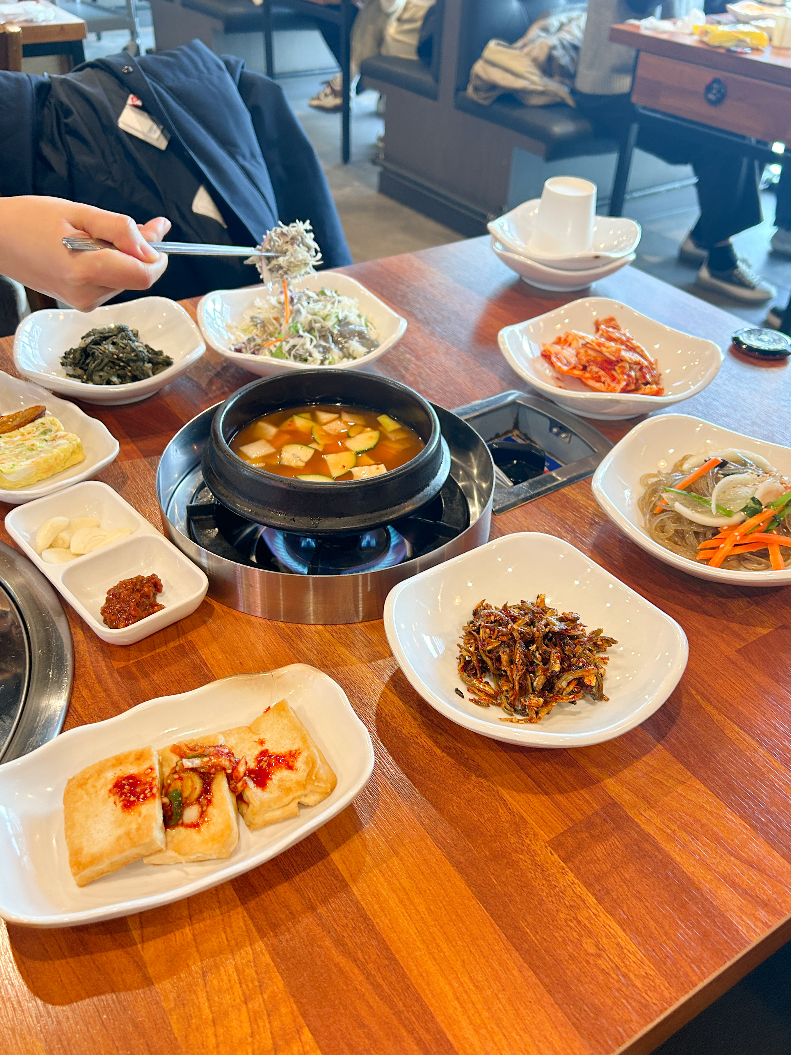 점심메뉴에 맞게 밑반찬이 아주 다채롭게 나온다. 된장찌개는 흔한 고깃집에서 먹을 수 있는 조미료 된장찌개 딱 그 맛이다. 딱히 맛이 없지도 맛이 있지도 않은 그런 맛이다. 하지만 그 다음에 나오는 비지찌개? 이름은 알 수 없으나 비지와 청국장이 버무려져 나오는 음식은 정말... 이것만으로 단일 메뉴를 정해도 괜찮을 만큼 맛이 좋았다.