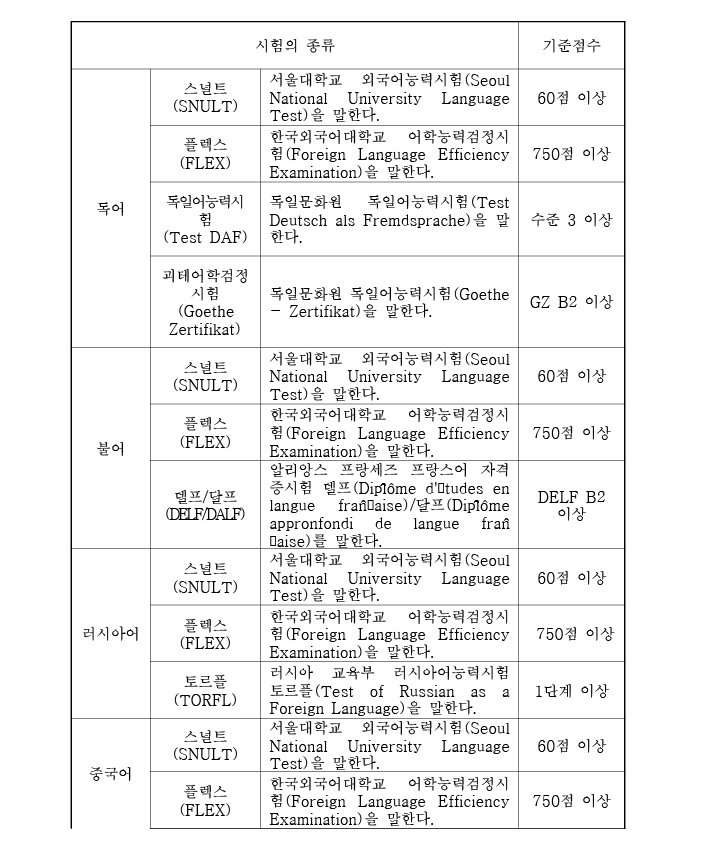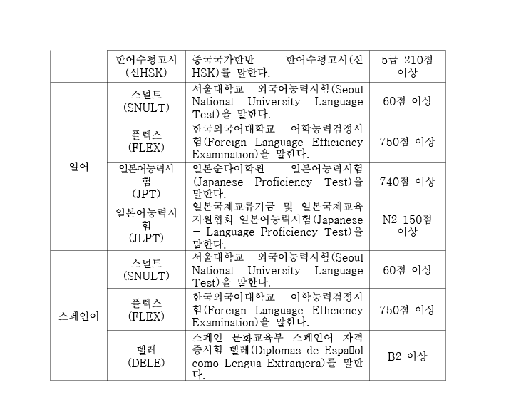 <외교관 후보자 채용시험 외국어능력검정시험 자격기준>