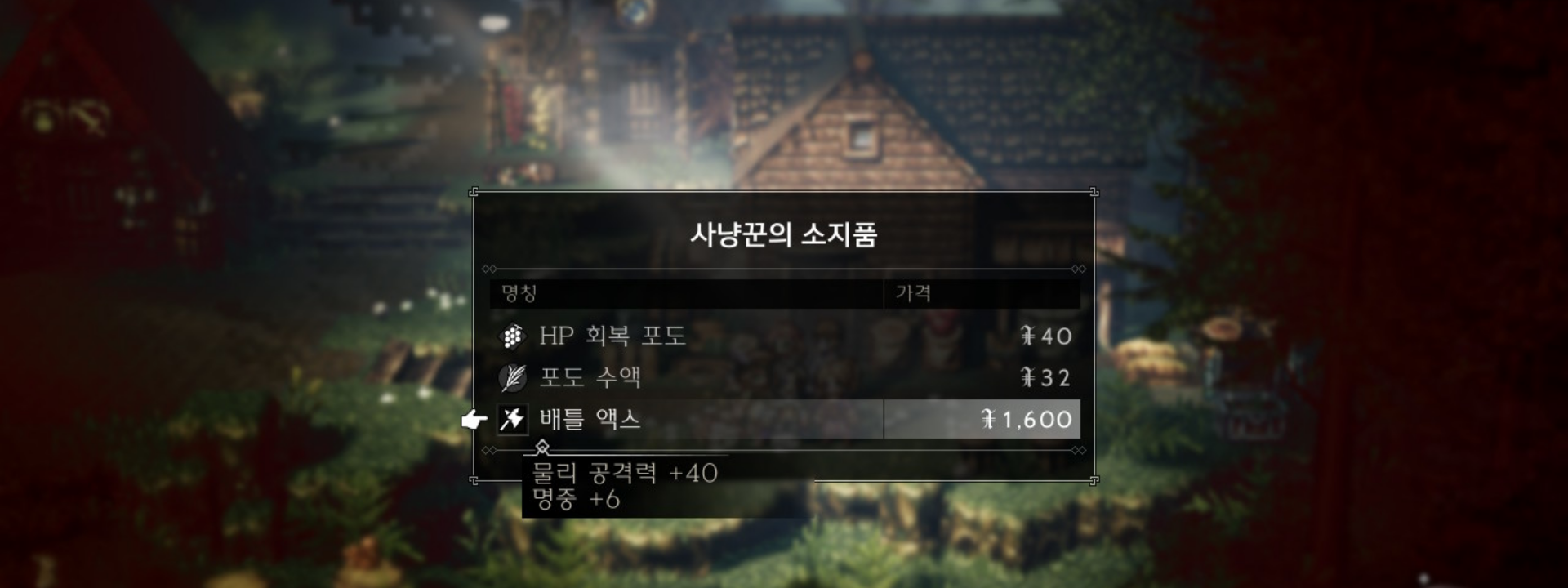 속삭임의 숲으로 가기 전에 한이트가 가진 장비를 교체해주고 가자. 이제 한이트는 물리공격의 한축을 담당하여야 하기에, 되도록 좋은 무기를 구해주는 것이 좋다.